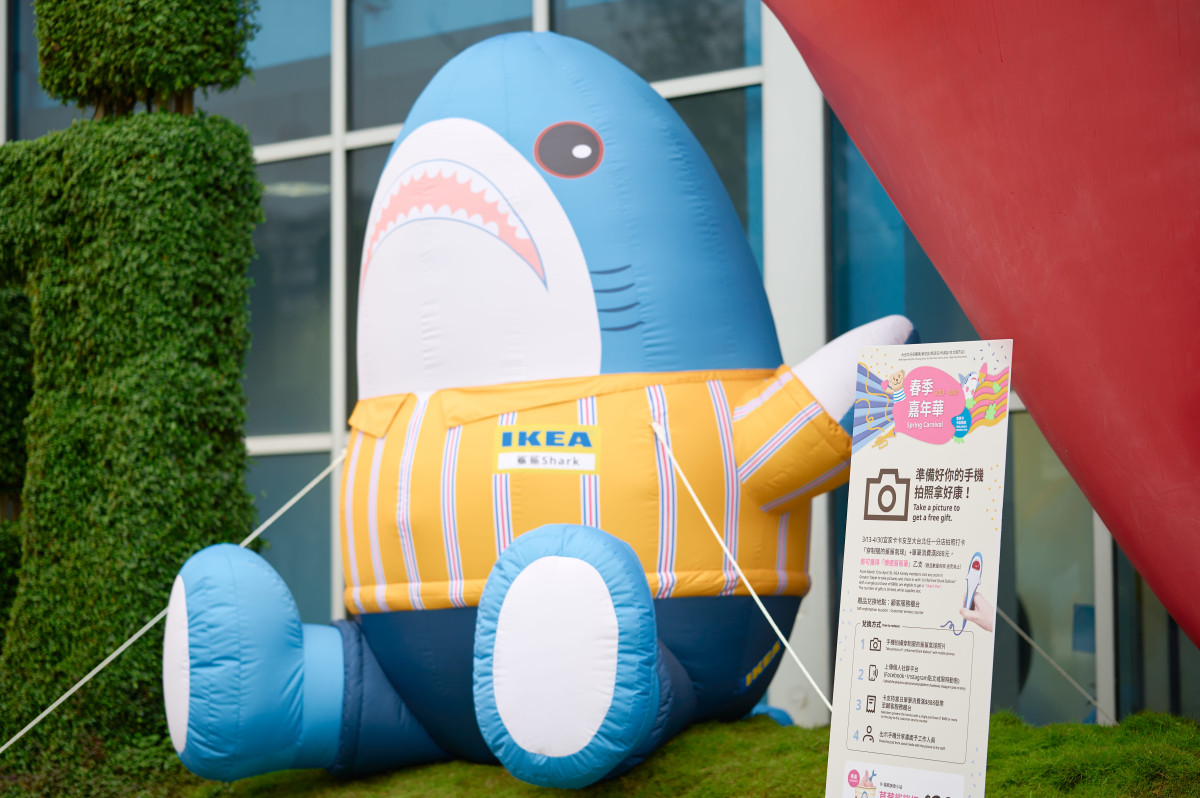 IKEA春季嘉年華於即日起正式開跑,豐富活動只有大台北獨享!不只能看見鯊鯊店長親自上街出巡宣傳,還有250公分的超人氣鯊鯊店長身穿制服,駐店在新莊、內湖、新店及台北城市店-小巨蛋四間分店出入口,迎接每一位來到店內參與春季嘉年華的消費者!