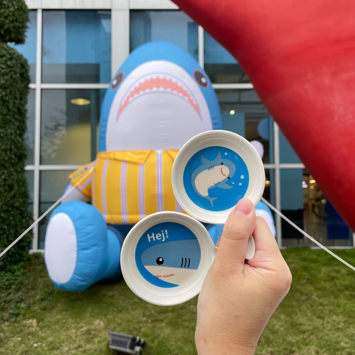 另外,即日起至4月30日止,當日消費單筆滿299元,即可獲得一點(每店每日最多兌換一點,大台北各分店加總每日最多兩點),累積兩點免費兌換一組鯊鯊醬料碟,圓盤造型底部印製著可愛鯊鯊圖樣,一組兩款,讓日常餐桌也都能有鯊鯊的陪伴。