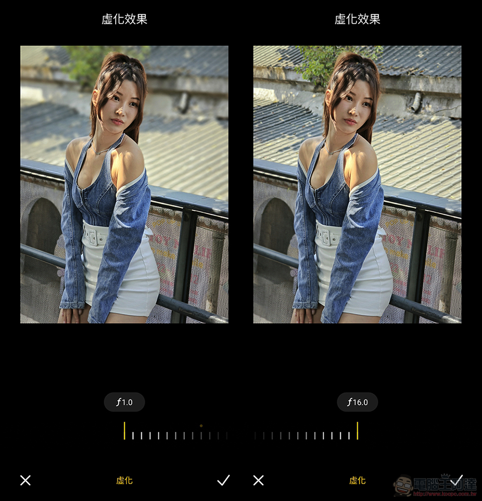 重點中的重點是,透過一般人像模式拍到的照片,還可以直接在編輯介面中調整虛化的效果唷,同樣提供了一般智慧型手機景深模擬功能的自由度(比讚):