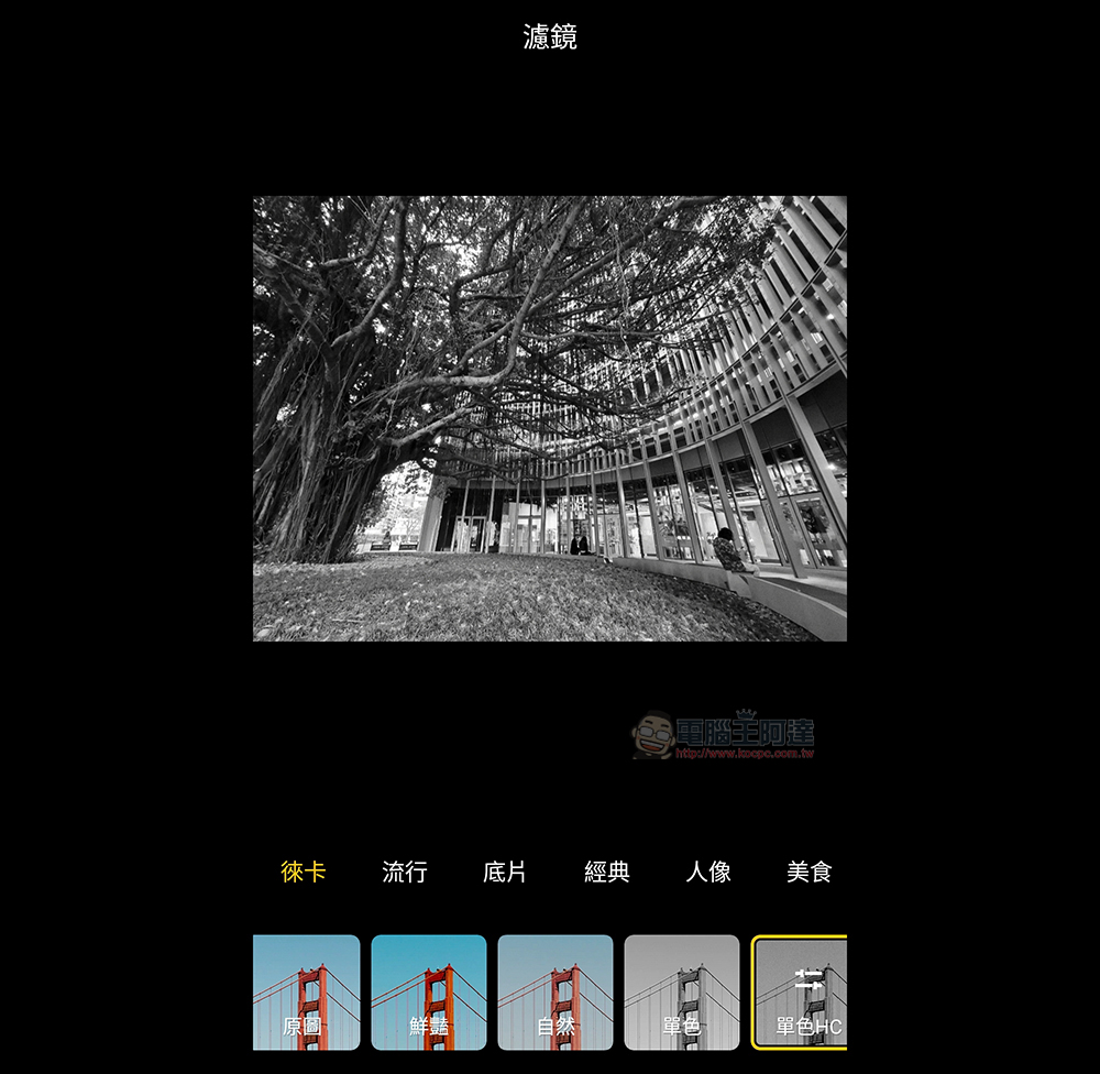 最後,如果你跟阿達一樣都有嚴重的選擇困難,不知道要選哪個徠卡「濾鏡」效果才好的話。其實在編輯器裡面,徠卡也獨家提供四個濾鏡給大家套用 - 但請記得,原生「徠卡生動」與「徠卡經典」原生雙畫質的話,因為是原生產生的,所以還是要先選好你偏好的「徠味」是哪種喔: