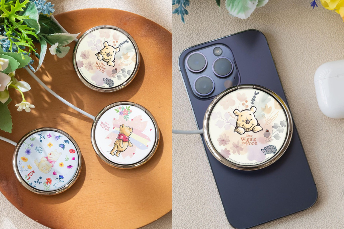 這款「小熊維尼磁吸充支架」共有3款圖案,包括櫻花、百花、渲染款,以手繪小熊維尼風格呈現,可自動吸附定位隨意調角度,設有圓形環扣可當手機支架,支援最高 15W無線快速充電支援、Qi無線充電規格的手機、平板、無線耳機充電盒等設備!iPhone12.13.14 系列對應手機或保護殼都能使用。