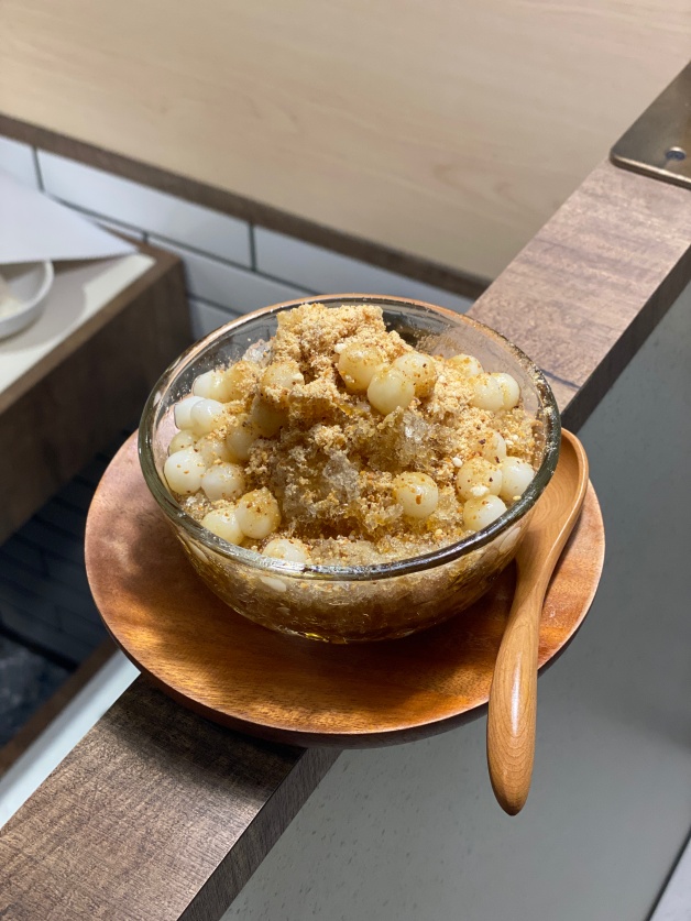 如果喜歡黑糖的話,推薦「黑糖花生湯圓冰」給大家,滿滿的湯圓,搭配花生粉,一口下去還有桂花香氣,用來收尾剛剛好!