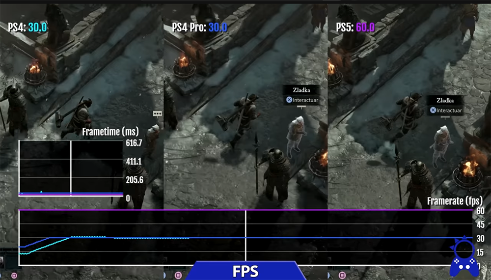 PS4 的畫質明顯比較差,PS4 和 PS4 Pro 都是 30FPS,PS5 可來到 60FPS: