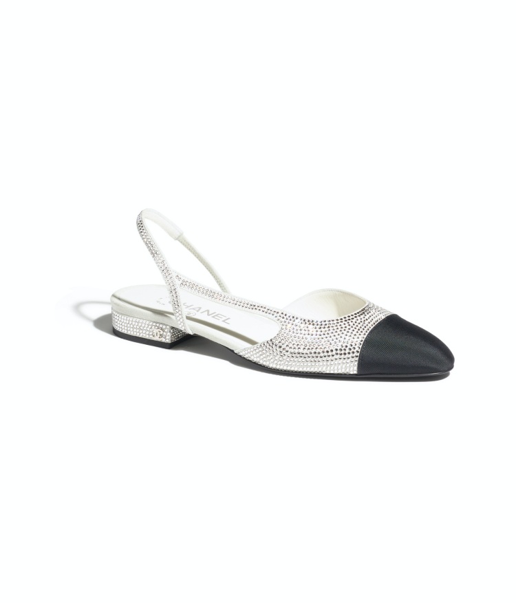 想要一雙平底好走的鞋款嗎?Chanel 本季亦運用雙色鞋為靈感,打造了這雙鑲滿水晶的平底鞋,優雅的外型搭配上閃耀的光澤,能為妳的穿搭製造一個搶眼的亮點。(商品售價:NTD96,100)
