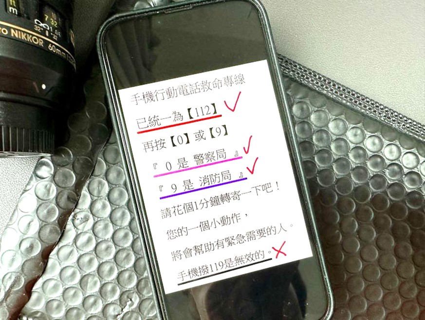 天有不測風雲,由於現代社會人手一支手機,新一代手機都開始內建「SOS 緊急服務」或「車禍偵測」功能作為用戶警急救命求救之用。不過,多數情況下若需求救,都必須自行撥打求救專線~「119」或「110」。最近網路又盛傳:「手機行動電話救命專線已經統一為「112」,同時手機打「119」是無效的。」 「112」是全球統一的緊急救難專線是正確的,但手機撥打119或110仍是最快的求救方式。