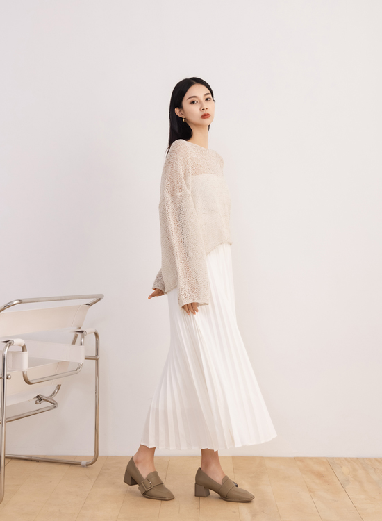 百搭的樂福鞋不是只能帥,挑選帶些微跟高的款式和唯美的大地色系,就能讓女人味倍增,搭配裙裝整個人仙氣爆棚!