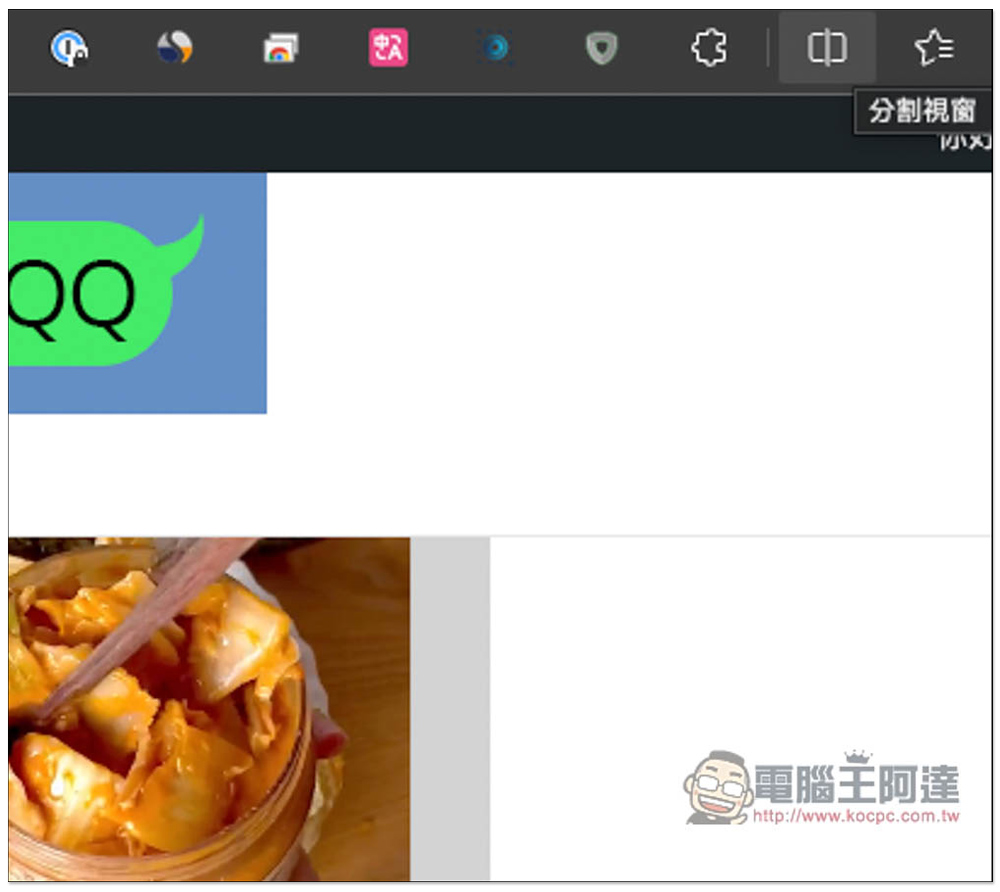 使用時也要注意,當你關閉這個啟用分割畫面的標籤時,兩個網頁都會被關掉,如果你是想要把分割畫面功能關閉的話,就再按一下功能圖示,這樣兩個網頁都會變成獨立的標籤,不會關掉。