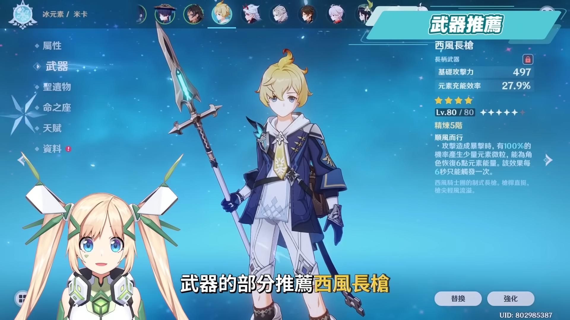哈囉哈囉!我是虛擬Youtuber璐洛洛,本次影片要帶來《原神》3.5版本全新四星角色「米卡」的評測全分析影片,雖然和綾華與申鶴這樣的永凍體系代表的角色放在同一個卡池,但是更多人關心的還是他在物理隊帶來的效益,因此若是不清楚如何培養米卡或是想了解米卡的相關配隊的話,可以參考洛洛接下來的影片內容,稍後也會說明米卡的角色定位、天賦技能、命座解析與抽取建議、聖遺物套裝的選擇、相關隊伍實戰示範等內容。