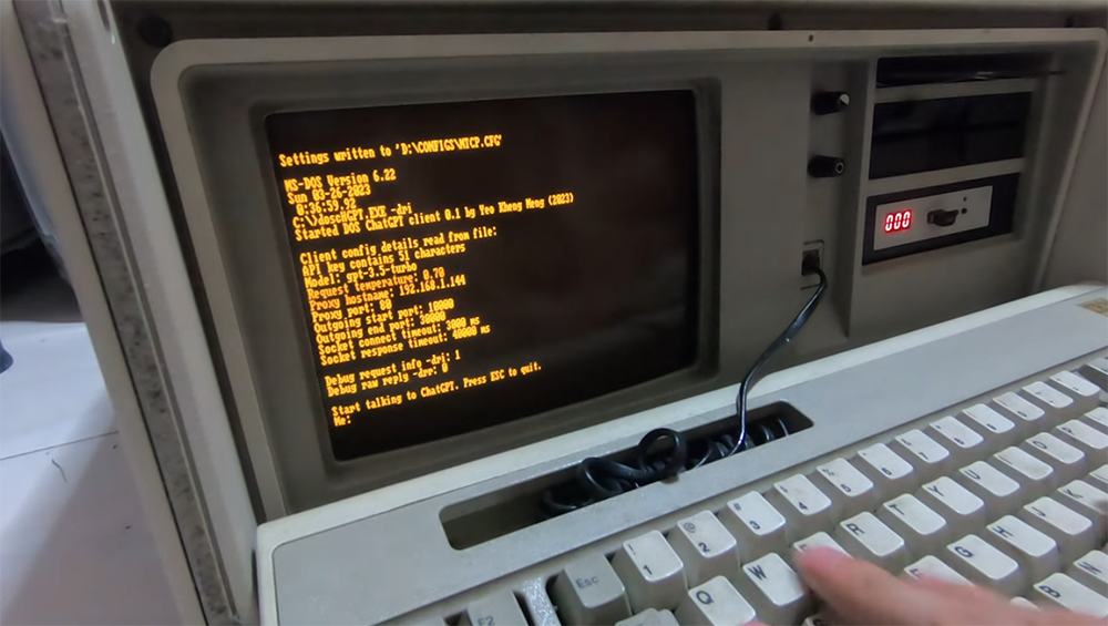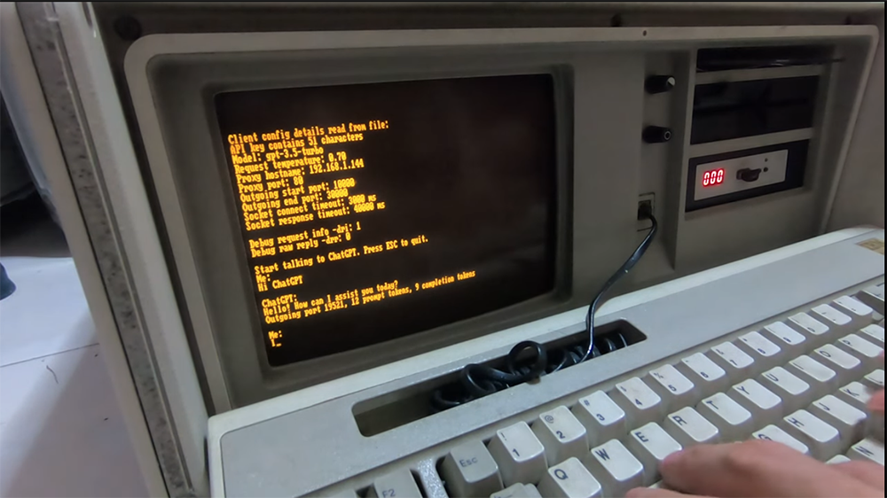 ChatGPT 雖然是這世代的產物,但不少創作者都有興趣跟以前的老產品結合,除了我們之前介紹過的「國外藝術家打造出一台 Ghostwriter,在打字機上也能跟 AI 聊天」,近期還有一位開發者把 ChatGPT 放入 1984 年推出的 IBM 電腦,作業系統只有 DOS,結果真的成功,由此可見既然這麼老舊的電腦都能跑,那規格更低、更舊的應該也沒問題。