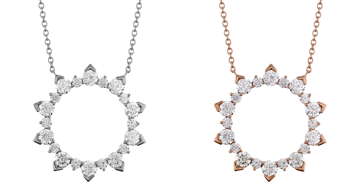 「Aerial Eclipse」項鍊奪目迷人,可完美搭配任何妝容。這款鑽石項鍊設計經典永恆,象徵光明溫暖生命繁盛,如太陽一般永放光芒,可單獨佩戴,亦可與其它珠寶項鍊疊戴搭配。