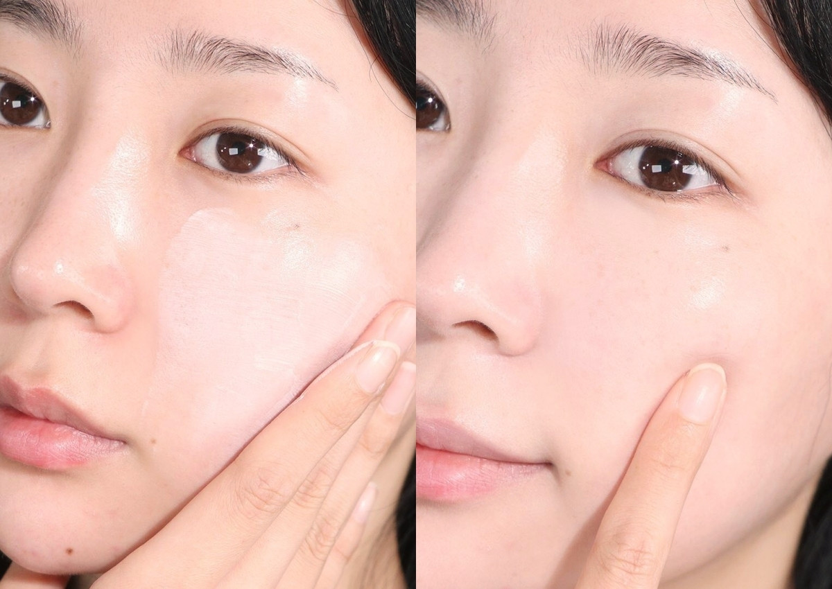 如果覺得粉底比較厚重有粉感、但素顏霜遮瑕又不夠的話,可以試試看把素顏霜混合粉底,素顏霜:粉底比例大概抓1:2即可,輕輕混合均勻後,再用粉撲輕拍上臉,一樣注意量不用太多,少量多次慢慢疊加更不厚重,不僅自然提亮、還可以修飾肌膚瑕疵,完成明星那種自然的奶油肌妝感。