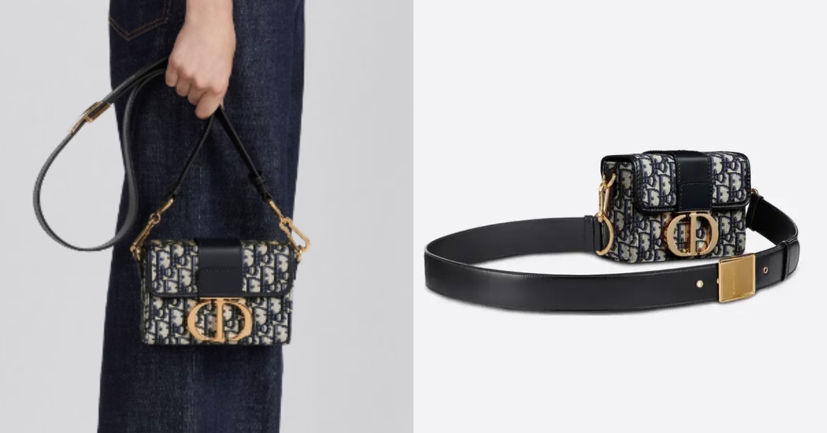 30 Montaigne系列的迷你包太Q了喔!包身是藍色的Dior經典Oblique提花設計,包包翻蓋搭配復古金色飾面金屬「CD」鎖扣,雖然小巧但是蒙田包背面的經典「30 MONTAIGNE」燙印標誌跟軍事風格扣環都沒少,包包除了可以肩背或斜背還可以手提使用!