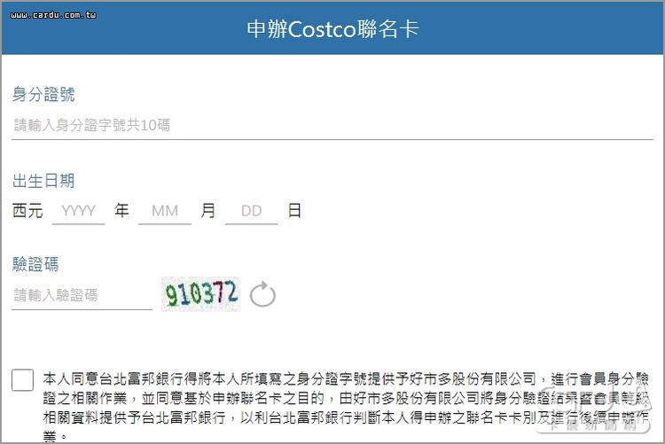 台北富邦Costco聯名卡線上申辦流程