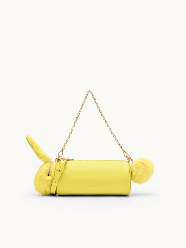 白兔、黃兔、粉紅兔…你要認養哪一隻?走極簡個性風的品牌PEDRO,打造的兔子單肩包不用擔心太可愛,圓筒包型線條俐落、簡約,在旁邊用絨毛材質很意象式(?)的還原出「可拆卸的兔頭+兔尾巴」,搭配率性的金屬鏈裝飾、亮眼配色,背上就是又時髦又帥氣的懂穿小姊姊~