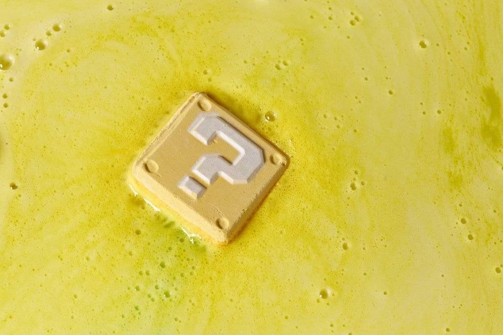 這波聯名最受關注的絕對是這顆巨大的問號磚塊氣泡彈,丟到加水的浴缸融化後,會出現隱藏版的造型香皂,有蘑菇、金幣、星星、食人花共6款圖案,香氣也都不一樣,採隨機方式,就像在拆盲盒般,讓泡澡多了份驚喜。