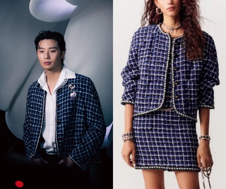 朴敘俊在本次看秀的穿搭選擇了品牌2023春夏前導系列的斜紋軟呢外套做搭配,這件斜紋軟呢外套運用無領的方式做設計,讓整體多了幾分輕鬆自在的樣子,在內搭他則用一樣來自 Chanel的棉質襯衫屆開了領口的扣子,並將衣領外翻露出脖子的線條增加輕盈感,簡單的黑色長褲讓外套成為重點,沒有過多的首飾搭配,僅用胸針做點綴,一切的搭配都恰如其分,讓他整體氣質 100 分!