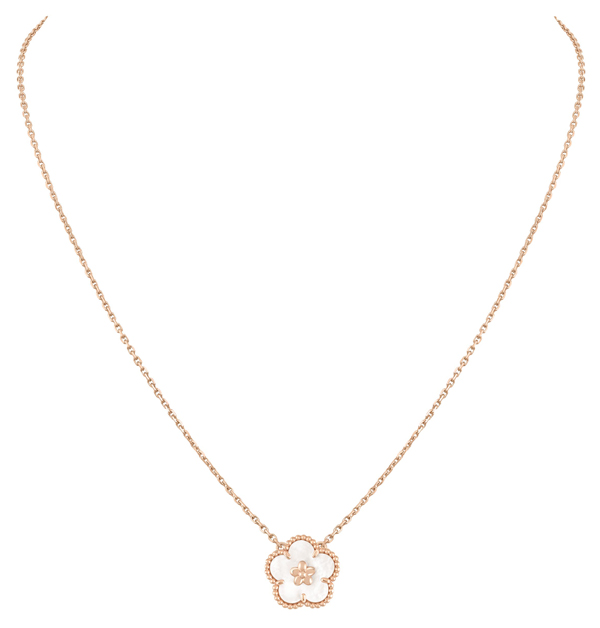 玫瑰金鑲飾白色珍珠母貝梅花造型吊墜,NT$ 98,000。