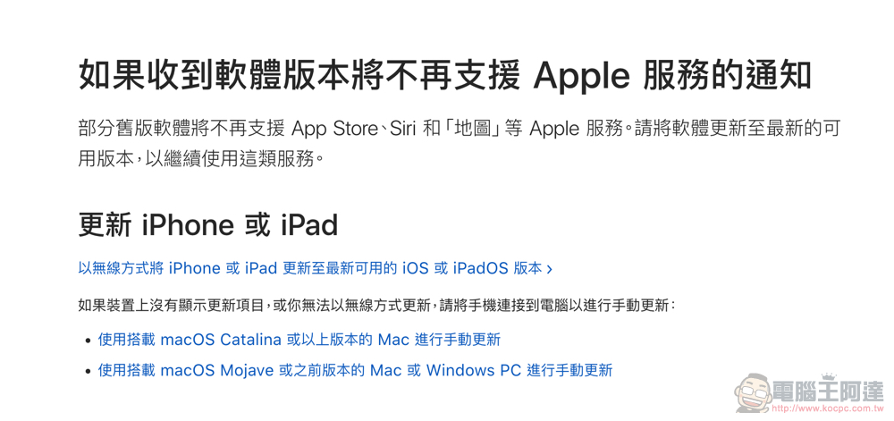 必須說,其實個人印象以往在真的很舊系統的超老裝置上,好像主要的困擾會是無法在 App Store 把應用更新到新的版本。也因為這樣,基本上這些老裝置可能就會漸漸退休了。不過目前看來,透過爆料神人的消息,乃至於官方的最新支援頁面看來,蘋果似乎真的有可能將要對還安裝著老舊系統版號的設備,執行切斷 Apple 原廠服務的強硬策略了。