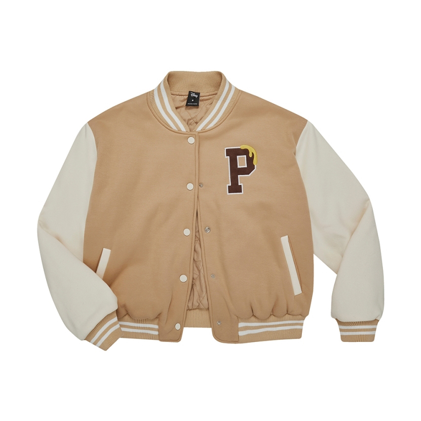 CACO撞色棒球外套正面有字母P布繡,背面是維尼圖案的電繡,造型十足還多了點俏皮!這件棒球外套的材質版型很挺,內裡是菱格鋪棉,怕冷的女生必收。棒球外套要怎麼搭配?外套裡面穿素T,配牛仔短褲可鹽可甜。想要再加點配件?那就配戴一頂老帽,來提升穿搭運動休閒感。