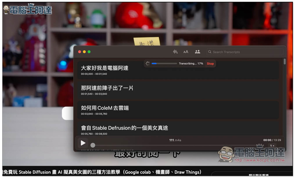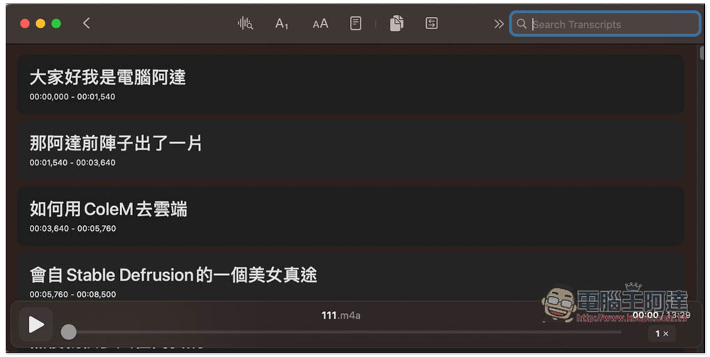 既然模型需要下載,那也代表這個 AI 語音轉文字動作,都是在本地完成,不需要上傳到伺服器之類,就安全性來說相當不錯。
