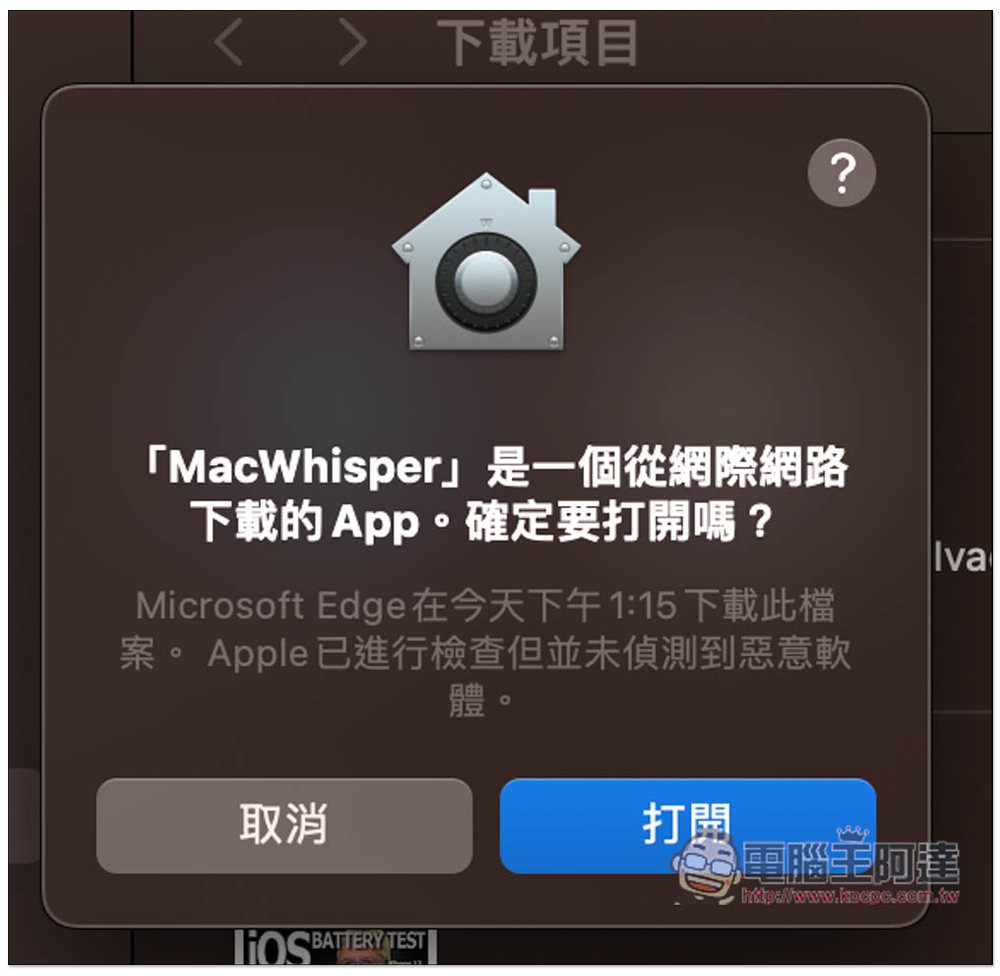 下載後打開,因為是從網路上下載的工具,首次打開會跳出這訊息,按打開: