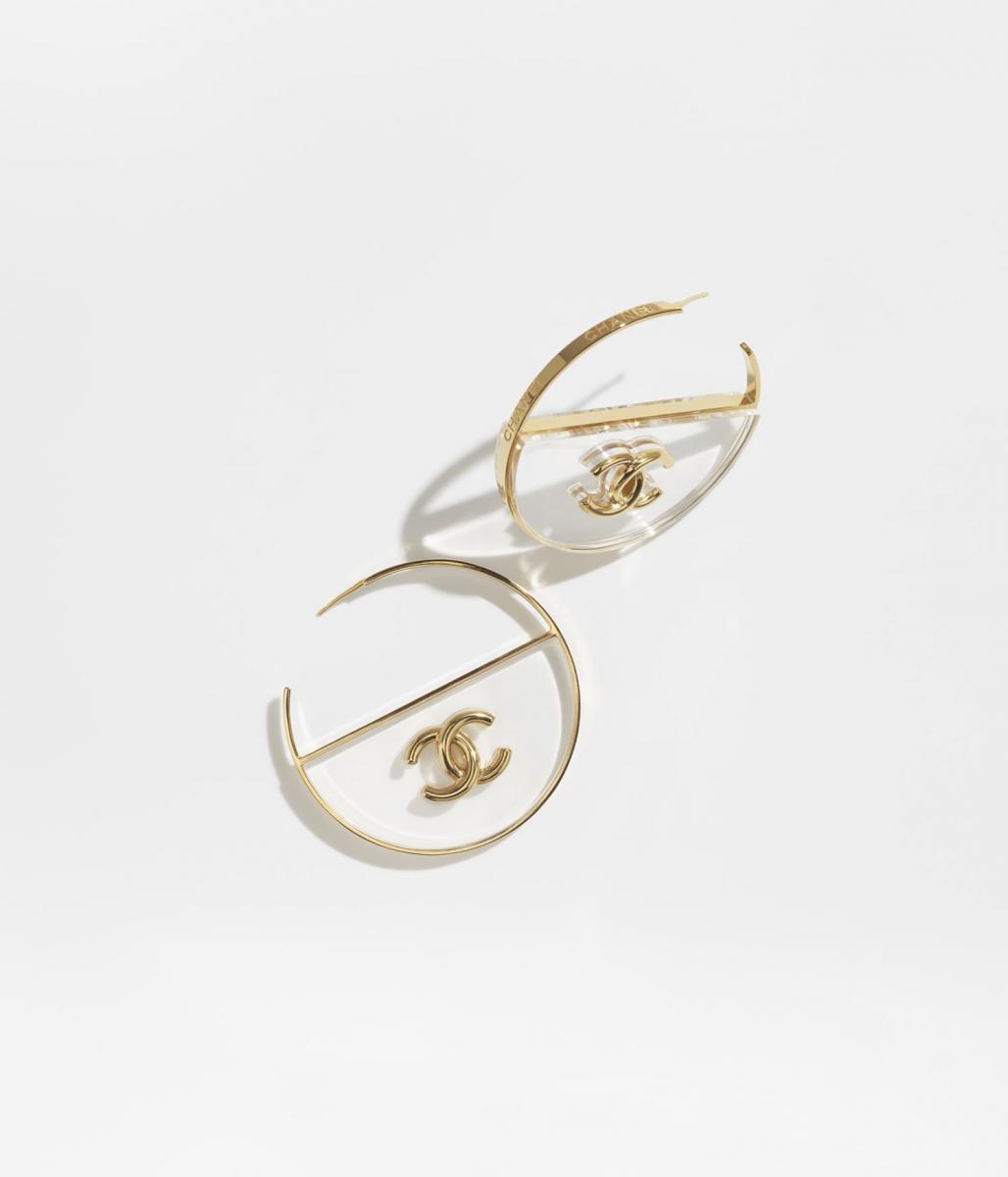 Chanel的工藝總能體現在精巧的小細節上,比如這個耳環就是個好例子!把透明樹脂也處理得非常輕透,戴上它像是懸浮在耳邊,搭配上圈形像是呼拉圈的耳環,金屬側邊上小巧的Logo字樣,細心程度只能說香奈兒真的太狠了!(價格:NT$42,900)
