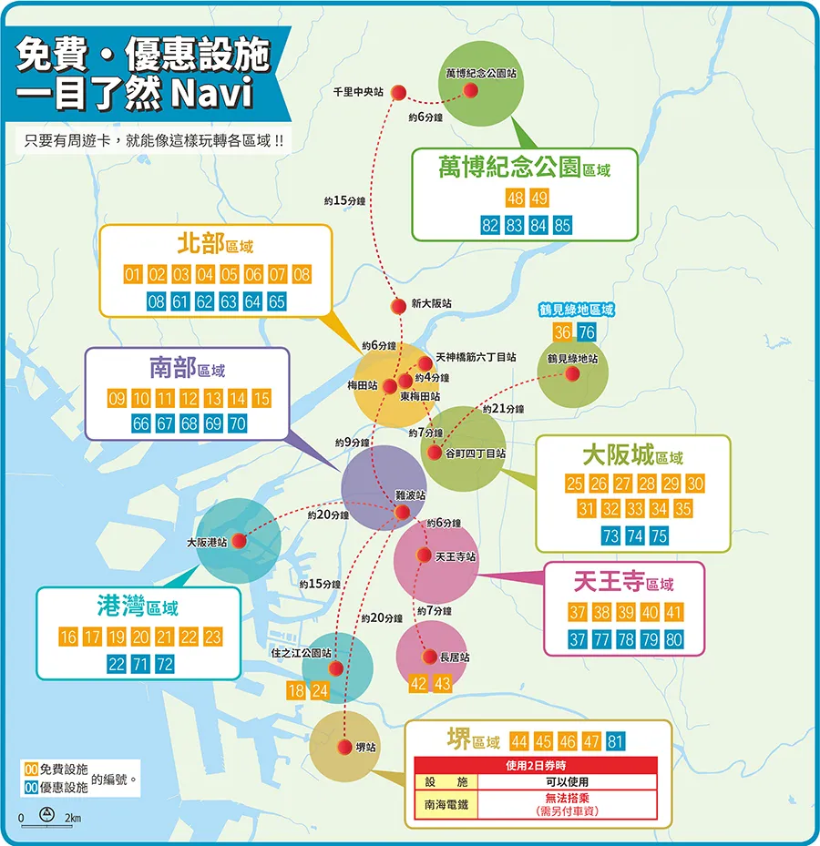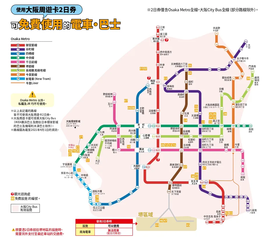- 雖然堺市周圍 (下圖的底部區域) 的南海電鐵無法免費搭乘,但依舊可以免費參觀