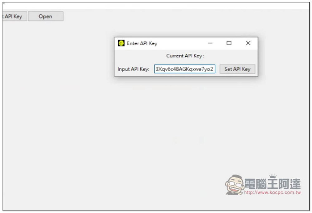 像這樣,把你的 API Key 貼上之後,按 Set API Key 就能開始使用了: