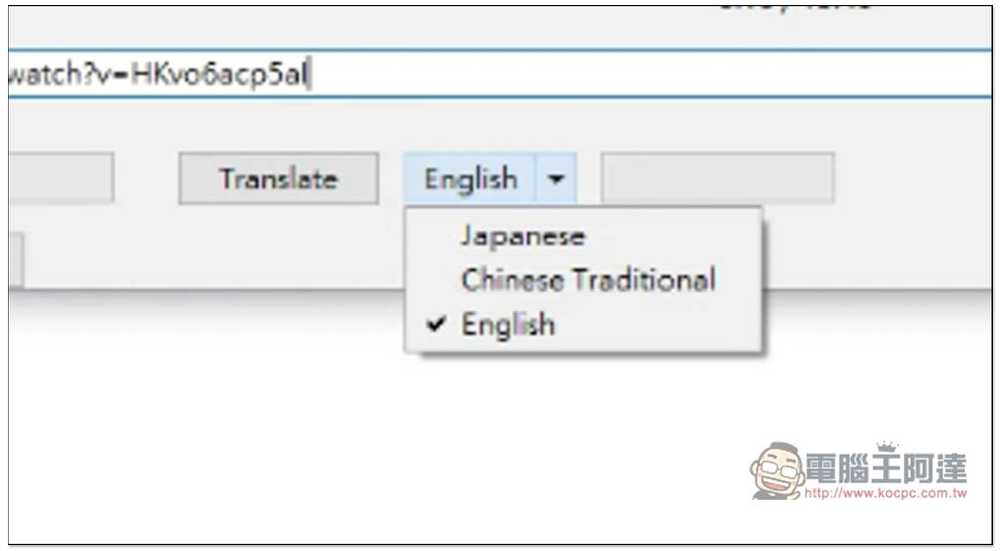 Translate 就是翻譯功能,目前僅支援來源翻成日文、繁體中文和英文,像我這部影片是英文字幕,我想翻成中文的話,就選擇 Chinese Traditional: