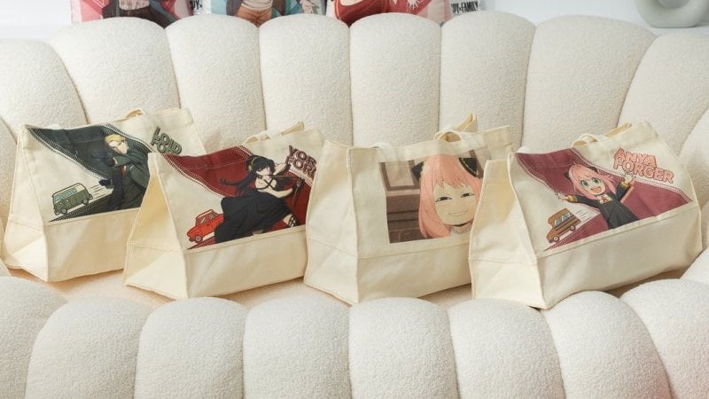 最後就是粉絲們一定要收藏的顏藝週邊!「收納提袋」使用帆布製作,可任意壓扁收納,一共有四款不同圖案,除了有約兒、洛伊德之外,更有安妮亞謎之微笑款,