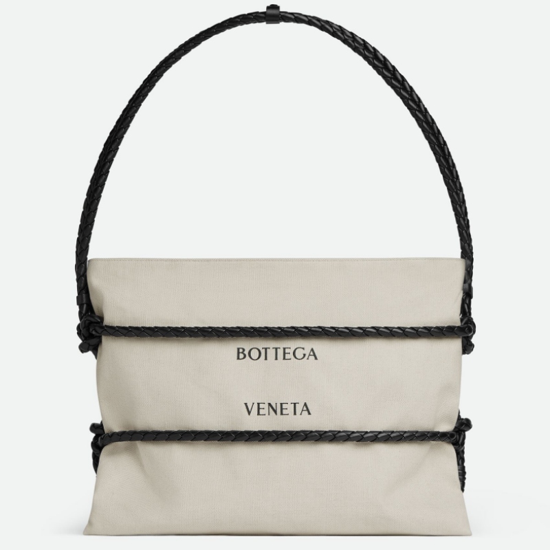 除了把牛皮紙袋來翻玩,創意總監Matthieu Blazy更把腦筋動到防塵袋身上?把包包防塵袋以帆布的材質呈現,更小心機的以皮革編織滾邊來做提把,很少出現logo的他們,竟然破天荒迎來字樣,Logo控應該欣喜難耐!(價格:NT$99,400)