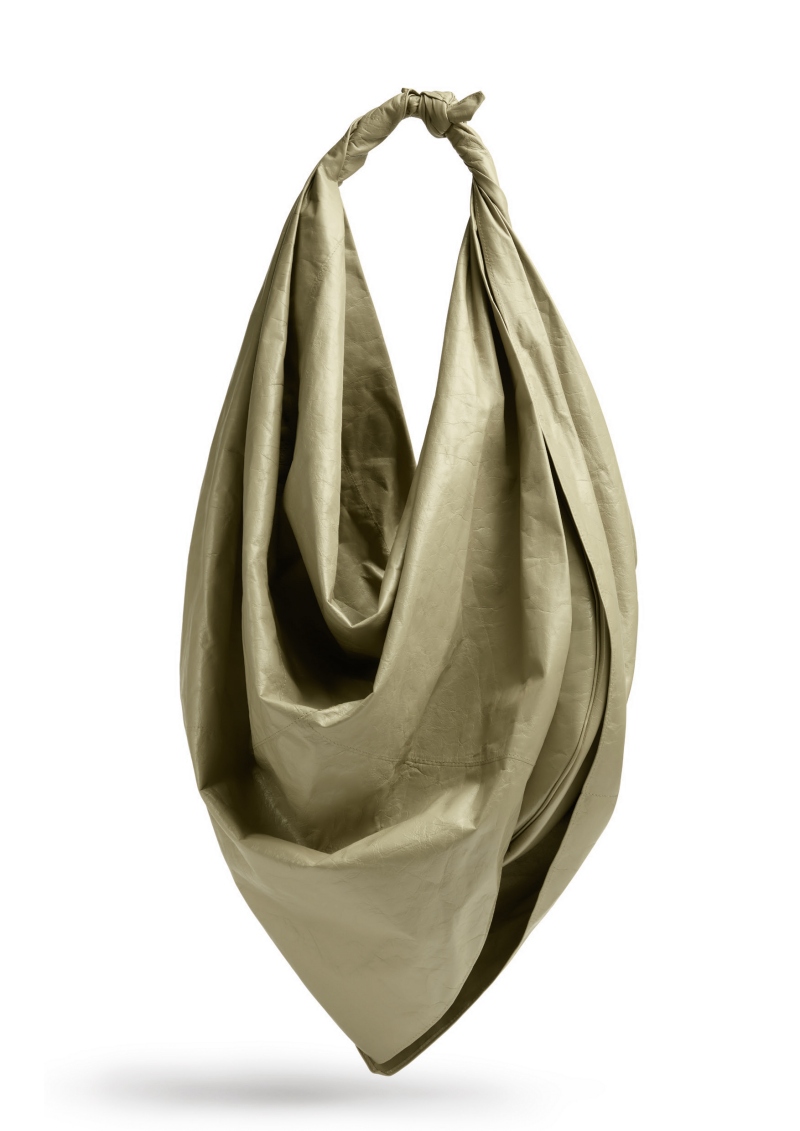 運用揉皺的皮革,讓整個包包更有隨性,更有著仿舊的溫潤感,提袋上方以紐結的形式,完成這個包,不知為何一直會想起《哈利波特》的分類帽,真的是超級可愛,就算整個沒有五金,也相當有趣!(價格店洽)