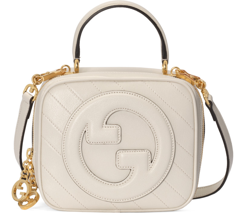 「Blondie」小方包有著圓弧形的手提把與皮革背帶,可以肩背上身,也可以把背帶拆掉變成手提包,更增添包包的可愛俏皮感,拉鍊處的金屬雙G吊飾,更把復古感的細節做好做滿,只能說復古控們今年春夏可以考慮把預算放在這款包!