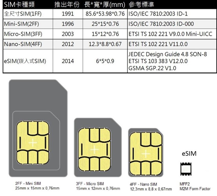 【eSIM卡(Embedded-SIM)】又稱嵌入式SIM卡、虛擬SIM卡,是GSMA所推出的一種可以遠端啟用的新一代SIM卡規格。用戶不需用到手機卡槽空間,民眾透過掃描QR Code就可以設定使用,目前僅特定等級以上的旗艦機種才能使用,目前有不少民眾會購買國外eSIM服務作為出國旅遊使用。