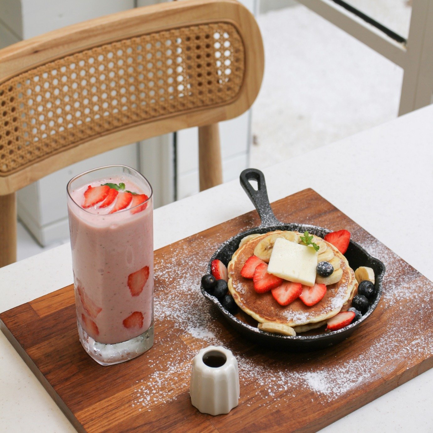 PRESERVE推薦必吃4.香蕉草莓果昔+香蕉莓果楓糖煎餅