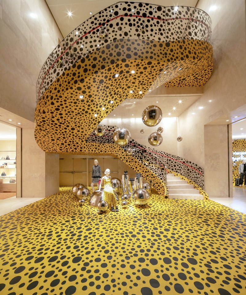 Louis Vuitton作為精品界的藝術資優生,在“精品天后宮”台北101的改裝競賽中,作為2023的精品改裝第一槍,完全是以“藝廊”規格來打造,從與東京同步的流線型旋轉樓梯、草間彌生二度聯名的裝置藝術,再到自家「Objets Nomades」系列的家具、擺件,從這些陳列上的小細節們,都可以看見LV爭奪精品一哥的野心!