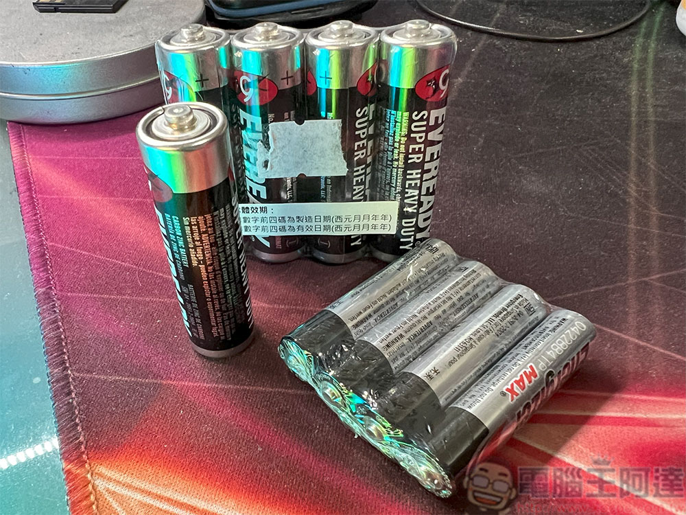 如果電子產品需要多個 AA 或 AAA 電池,請務必使用同一種類型的電池,切勿將鹼性、鋰離子或鋰電池混合在一起。這麼做不僅會降低設備性能,更重要的是它會損壞電池與設備。你也許可以處理液漏的鹼性電池,但損壞的鋰離子電池是徹頭徹尾的火災隱患。