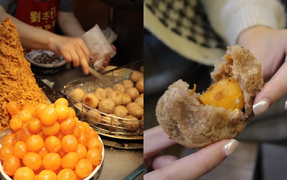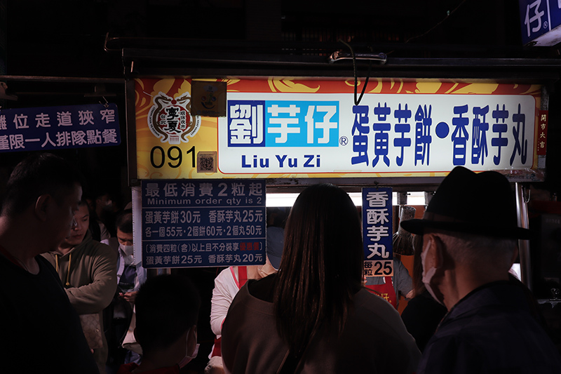 說到寧夏夜市,紅到不行的「劉芋仔」可不能錯過!每次都會被那疊成山的蛋黃給吸引,看到滿滿超浮誇地排隊人龍而打消念頭,其實老闆手腳超級快大約排個10分鐘就能吃到。品項超簡單只有兩樣,「香酥芋丸」就是完全沒有其他配料只有芋泥本人;而「蛋黃芋餅」就是香酥芋丸加蛋黃還有肉鬆,若跟饒河夜市的老芋仔比起來Naomi編反而更愛劉芋仔。