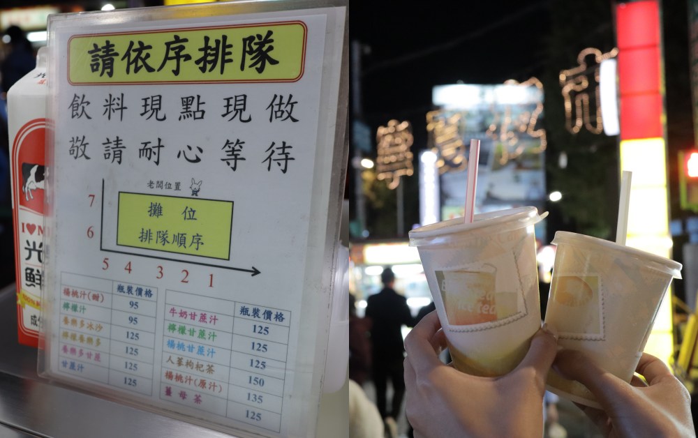 來到夜市必備一杯透心涼的果汁消暑,首先第一推薦位在夜市最頭的第一家「蓮果汁」,有別於夜市常見的檸檬柳橙,他們家主打的是甘蔗系列,牛奶甘蔗、檸檬甘蔗又或是楊桃甘蔗,不過Naomi編還是最愛原味款,但想去油解膩的則會推薦來一杯檸檬甘蔗。此外,它們家的楊桃汁也很值得一喝,使用來自彰化百果山的楊桃以古法醃製,不只生津止渴據說還有治喉嚨痛的妙用。