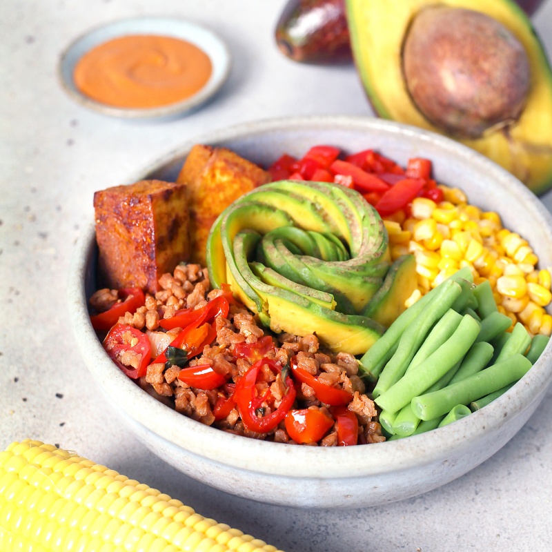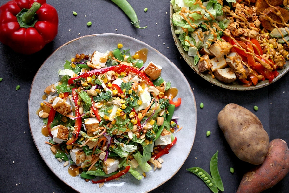 夏天吃上這道「甜豆烤豆腐芝麻油醋沙拉」,那清爽的自製芝麻油醋醬,拌入羽衣甘藍、烤豆腐與多款新鮮蔬果,陣陣芝麻香氣撲鼻而來,實在讓人忍不住一口接著一口啊~