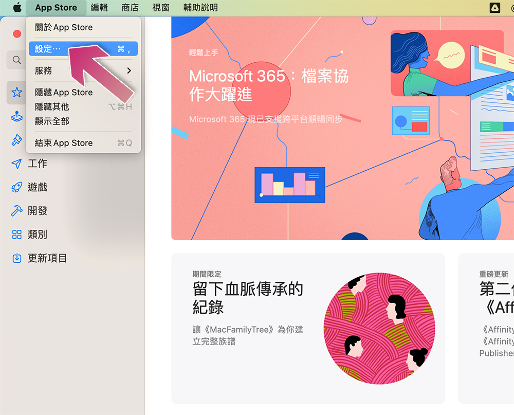 - 點擊功能列上的「APP Store」,從中選擇「設定」。