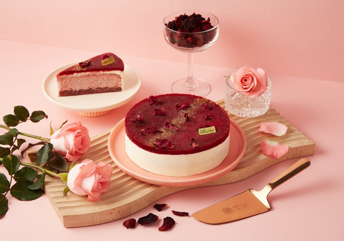 「起士公爵」以最頂級、純淨的食材,推出母親節「玫瑰水晶玻尿酸乳酪蛋糕」,嚴選屏東有機玫瑰熬製成玫瑰花醬,與頂級凝脂乳酪融合製成粉紅浪漫的蛋糕體,玫瑰香氣與乳酪完美融合,清爽又不膩口。蛋糕底層則是特製杏角玫瑰低醣豆沙餡,提升口感層次。還有表層晶瑩剔透的水晶洛神覆盆子淋面,以金色細粉與有機玫瑰花瓣點綴,如同在陽光撒下中盛開的玫瑰花園,透著光線折散出閃亮柔和的光芒。
