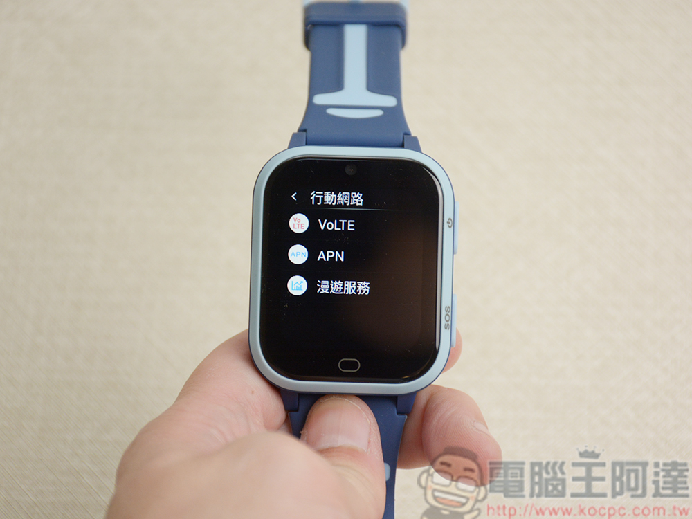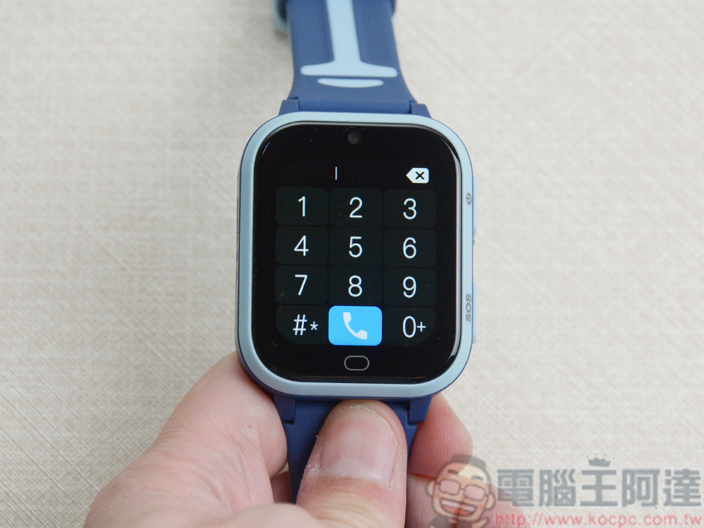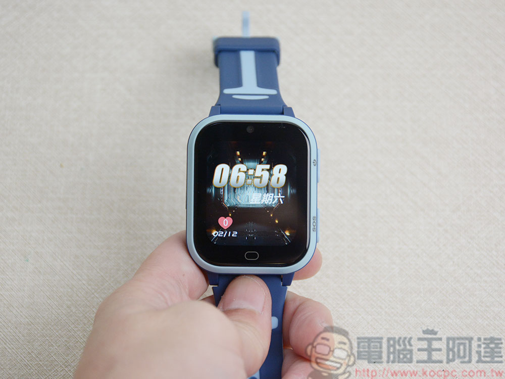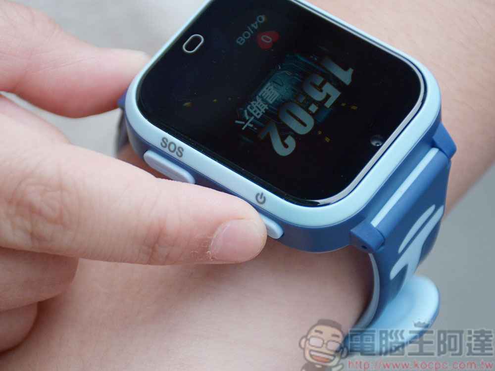 在錶側配置有功能鍵和 SOS 緊急求助按紐,當孩子遇到緊急情況時,按下它立即向已經在專屬應用程式中設定好的緊急聯絡人發出求救。至於如何設定,後面介紹專屬應用程式時會跟大家更詳細地介紹。位於錶面下方的橢圓形則可以讓你回上一頁功能選單。