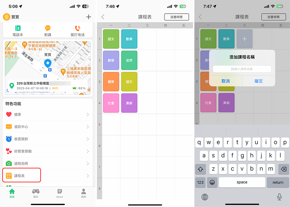 下一堂課是什麼?孩子不必再去翻紙本課程表,只要家長從專屬應用程式中將課程表設定好,孩子可以從這個功能中隨時查看詳細內容。