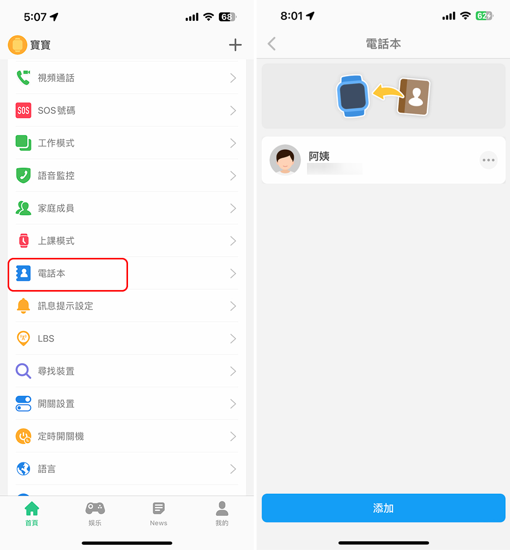 家長在專屬應用程式中為孩子設定好的通訊錄聯絡人都會顯示在這裡,孩子只要手指一點就能直接與選定的對象通話。像是阿姨、叔叔、舅舅之類旁系親屬或鄰居,孩子可能不記得電話號碼的情況下,也可以相當容易地撥打通話。
