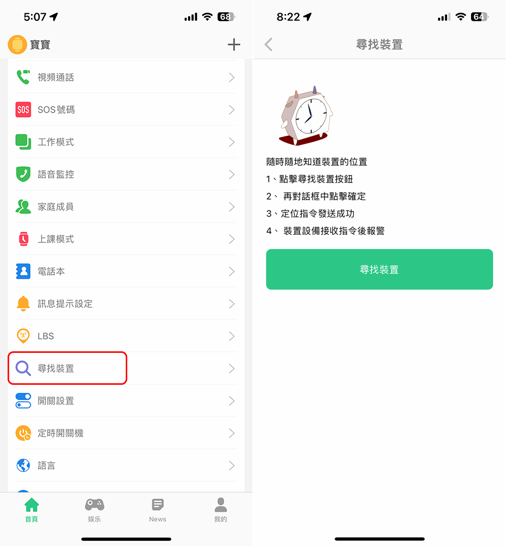 孩子容易把東西忘在放在什麼地方,家長應該都很頭痛,幸好 Thunder 雷電兒童智慧錶有辦法!可以從手機上的 SeTracker 2 應用程式中的尋找裝置功能,手錶會發出提示音來告訴你它在哪裡,更方便找尋。