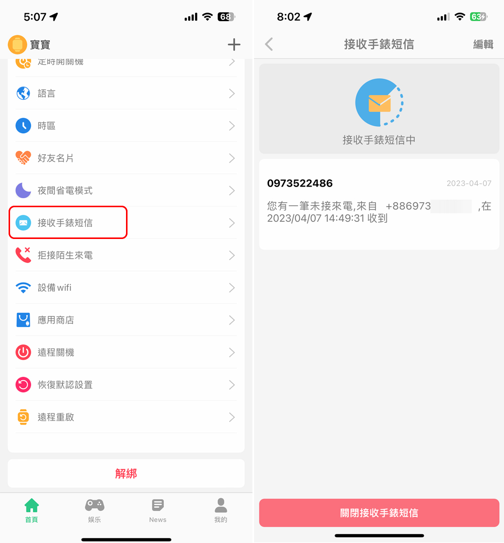 接收手錶短信