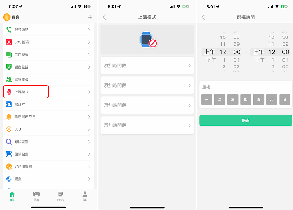 孩子的注意力相當不容易集中,家長自然是擔心孩子會因為被智慧手錶吸引而上課不專心。家長可以在上課模式中設定好哪些時間段屬於上課時間,在該段時間中可確保孩子不被外務打擾。