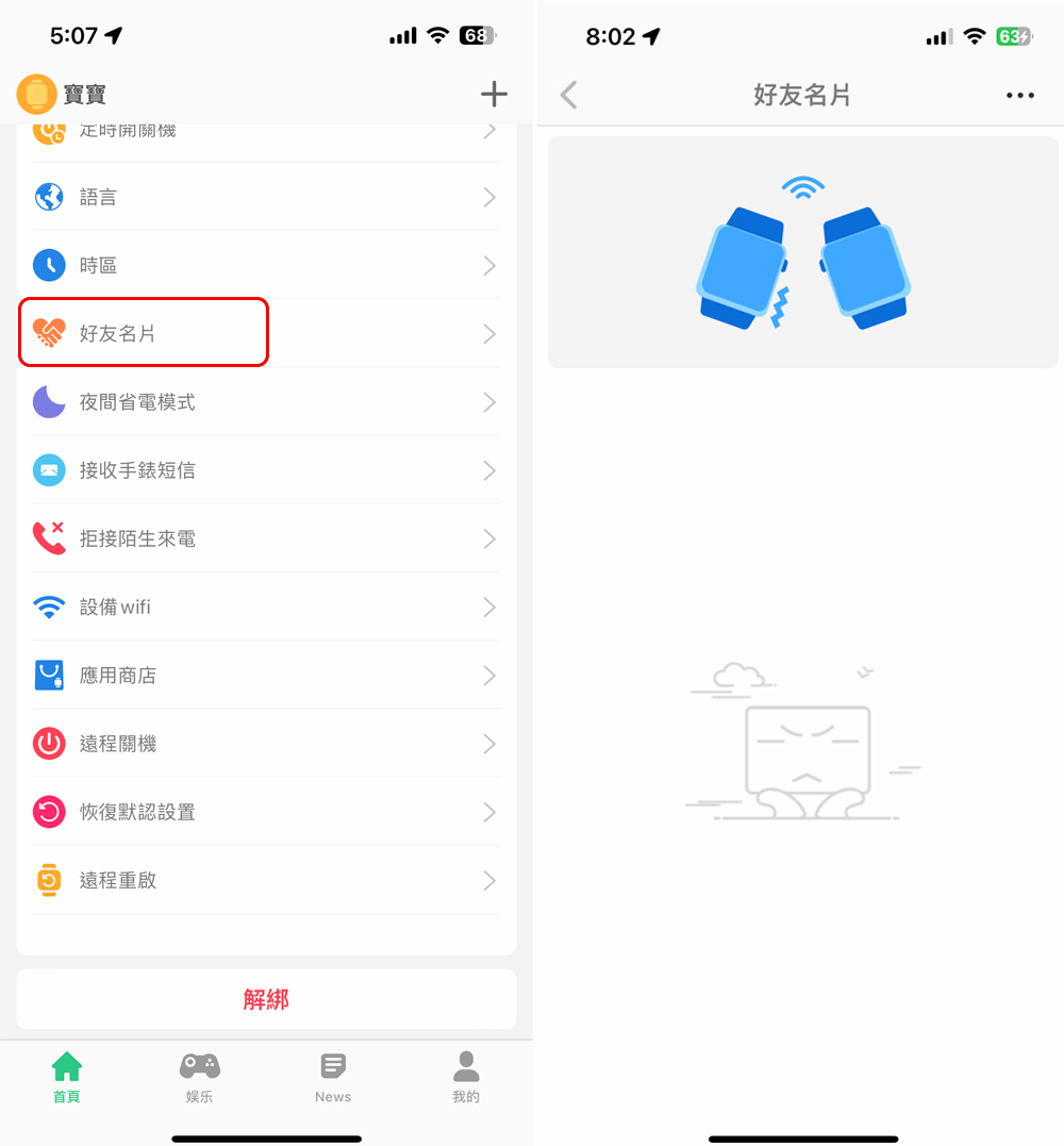 Thunder 雷電兒童智慧錶具備互相接觸即可將同伴加入好友的功能,想要查看孩子交了哪些朋友,可以從好友名片功能中查閱孩子的好友清單。