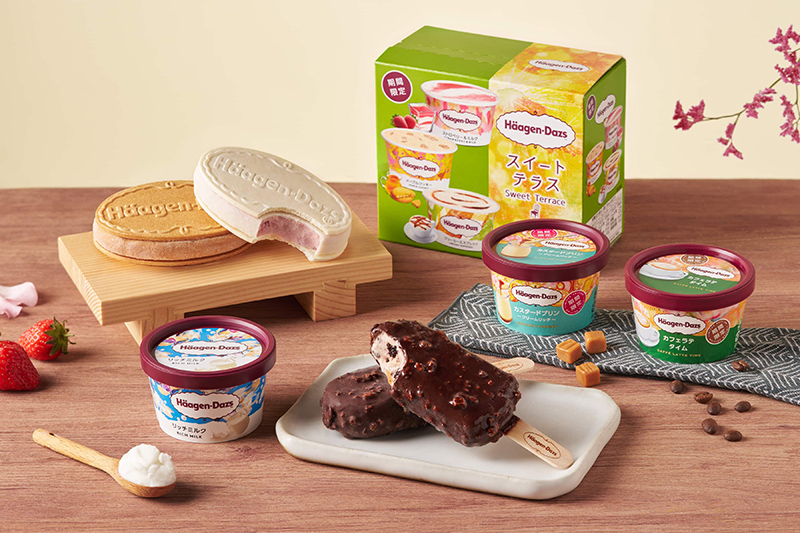 「哈根達斯Häagen-Dazs」日本限定口味台灣也能吃到啦!全系列冰品包括人氣定番的「日式卡士達布丁冰淇淋」、「珈琲物語冰淇淋」,以及曾被日本消費者票選最期待回歸的「濃厚牛乳冰淇淋」三款迷你杯之外,還有許多人日本超商必吃的「贅沢巧克力雪糕」,以及兩款雪餅「草莓恋人雪酥」與「濃醇焦糖雪酥」。最後再搭配上「日式午茶特賞」草莓牛乳、 楓糖脆餅、 濃厚拿鐵9款新品台灣就能吃到啦!